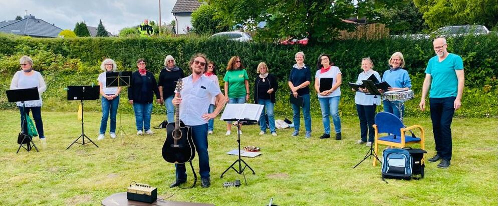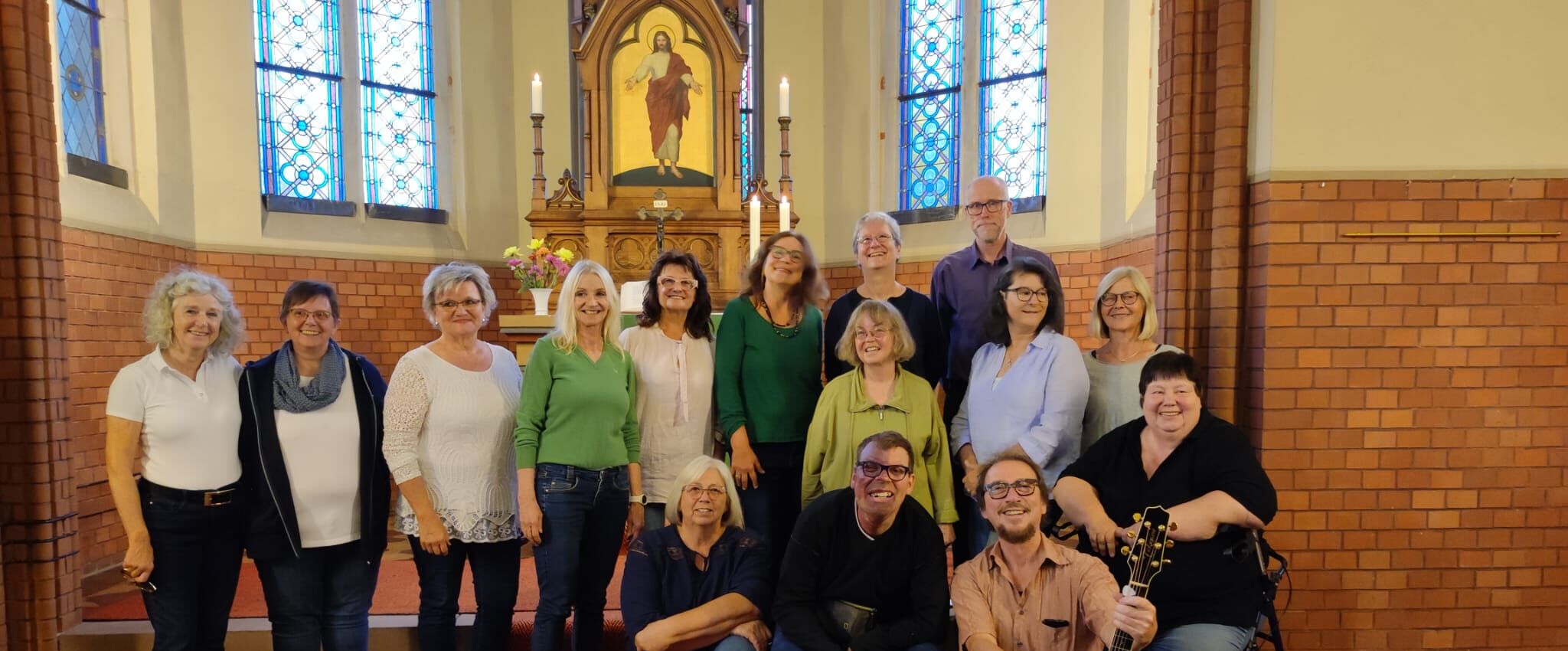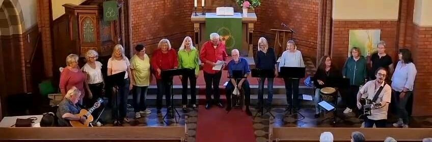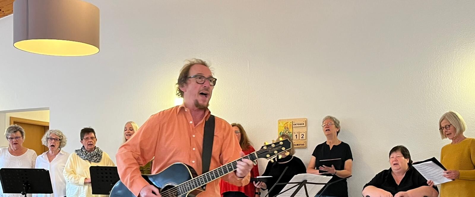 Wir sind ein kleiner gemischter Chor und singen neue und alte Lieder, die vierstimmig gesetzt sind. Zusammen mit unserem Chorleiter Christian haben wir viel Freude bei den Proben und unseren Auftritten.